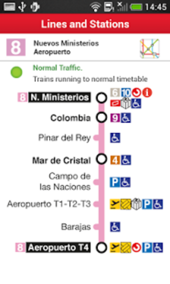 Appen för Metro de Madrid låter användaren ta reda på det bästa sättet att nå sin destination genom att använda den officiella applikationen.